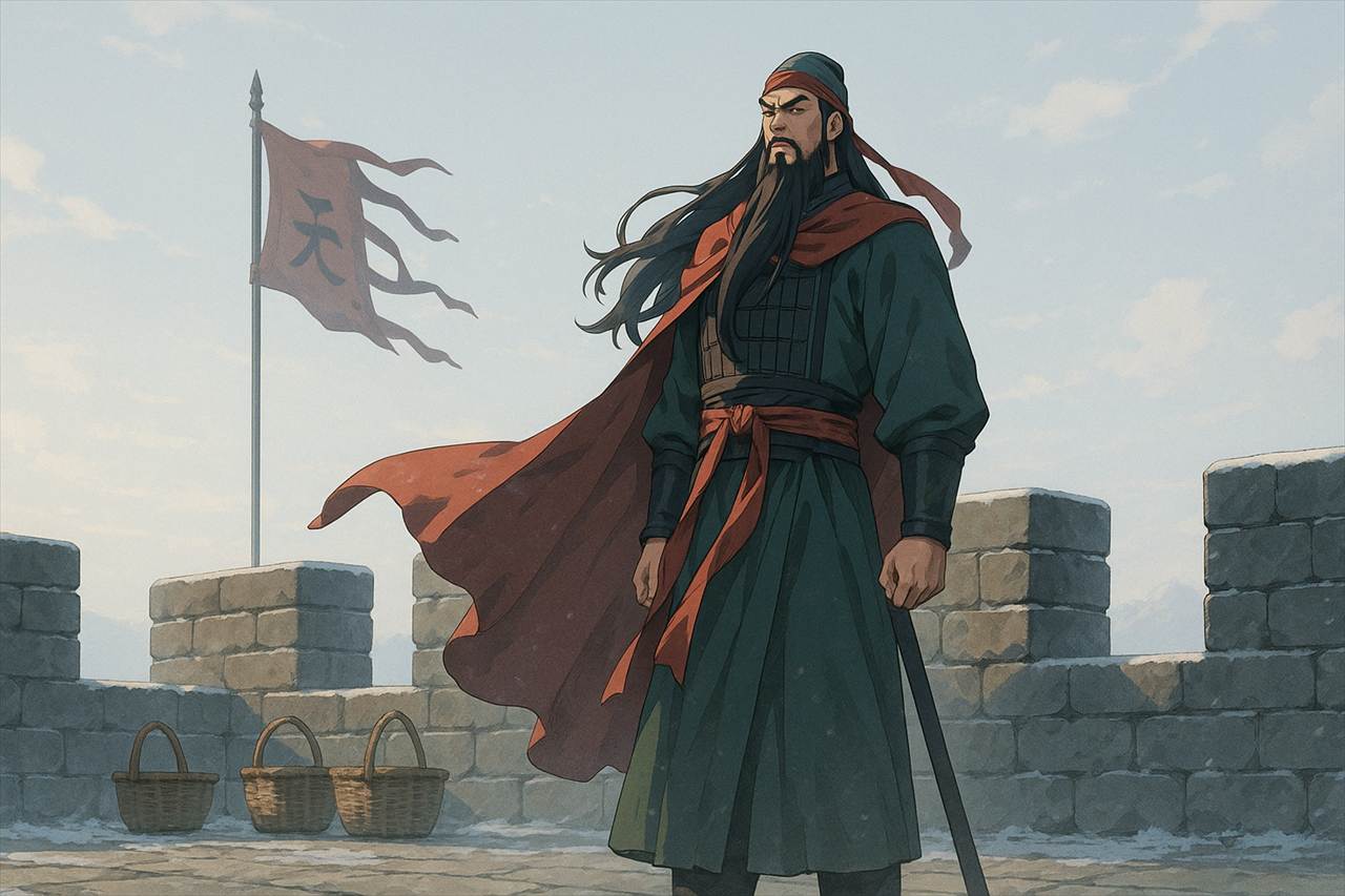 秋風が立ち始めた頃、関羽は大軍を率いて樊城へと進軍した。その威容はまさに美髯公の名にふさわしく、青龍偃月刀を携えた姿は敵味方を問わず畏敬の念を抱かせた。